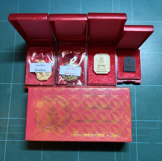 ชุดวัตถุมงคลที่ระลึกในงานฉลองสมณศักดิ์ พระครูสมุทรวีราภรณ์ วัดใหญ่บางปลากด จ.สมุทรปราการ เมื่อวันที่ 13-14 ธันวาคม 2544 |