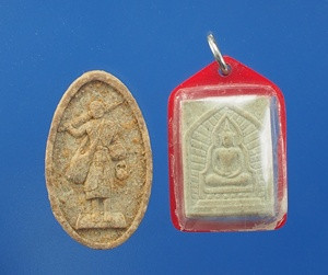 300 แดง พระ 2 องค์ พระสีวลี และ พระสมเด็จแหวกม่าน เนื้อผงหลังพลอยเสก หลวงพ่อทรง วัดศาลาดิน |