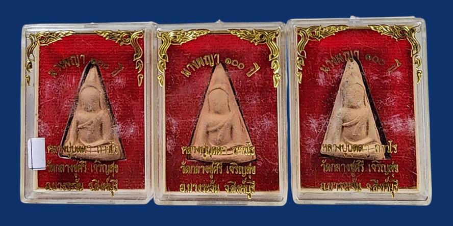 สมเด็จมังกรทอง ชุดกรรมการ 3 องค์ เนื้อดินเผาท่าสะแบง ตะกรุดทองคำ เงิน ทองแดง หลวงพ่อทอง สุทธสีโล วัดบ้านไร่ จ.นครราชสีมา |