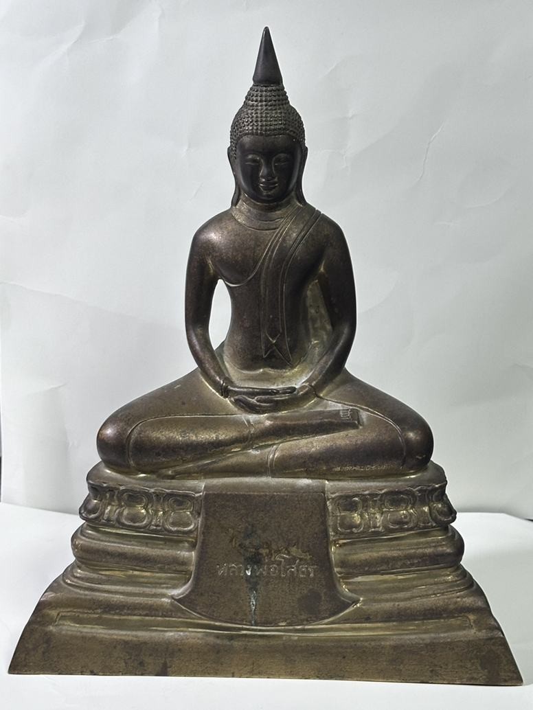 พระบูชา หน้าตัก 5 นิ้ว สมเด็จพระศรีเมืองทอง วัดต้นสน จ. อ่างทอง เนื้อทองเหลืองเก่า ซุ้มถอดได้ |
