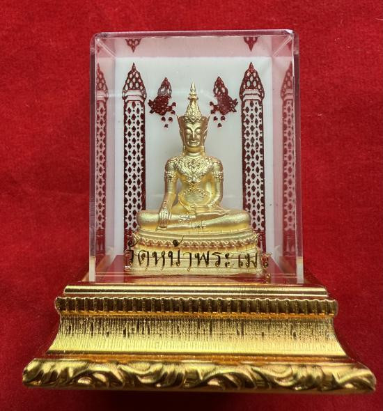 รูปหล่อตั้งหน้ารถครอบแก้วพระพุทธพิชิตมาร วัดหน้าพระเมรุ ขนาดหน้าตัก 1 นิ้ว เนื้อชุบทองพ่นทราย |