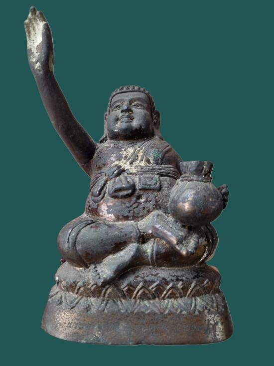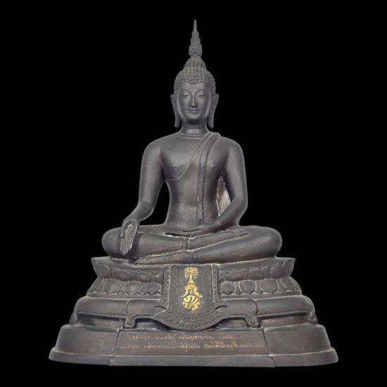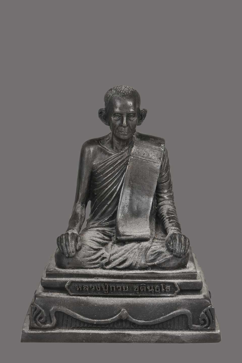 พระบูชา รุ่นแรก เศรษฐีนวโกฏ หลวงปู่มา ญาณวโร จ.ร้อยเอ็ด เนื้อโลหะรมดำ ใต้ฐานอุดปูนขาว ปั้มตราวัด |