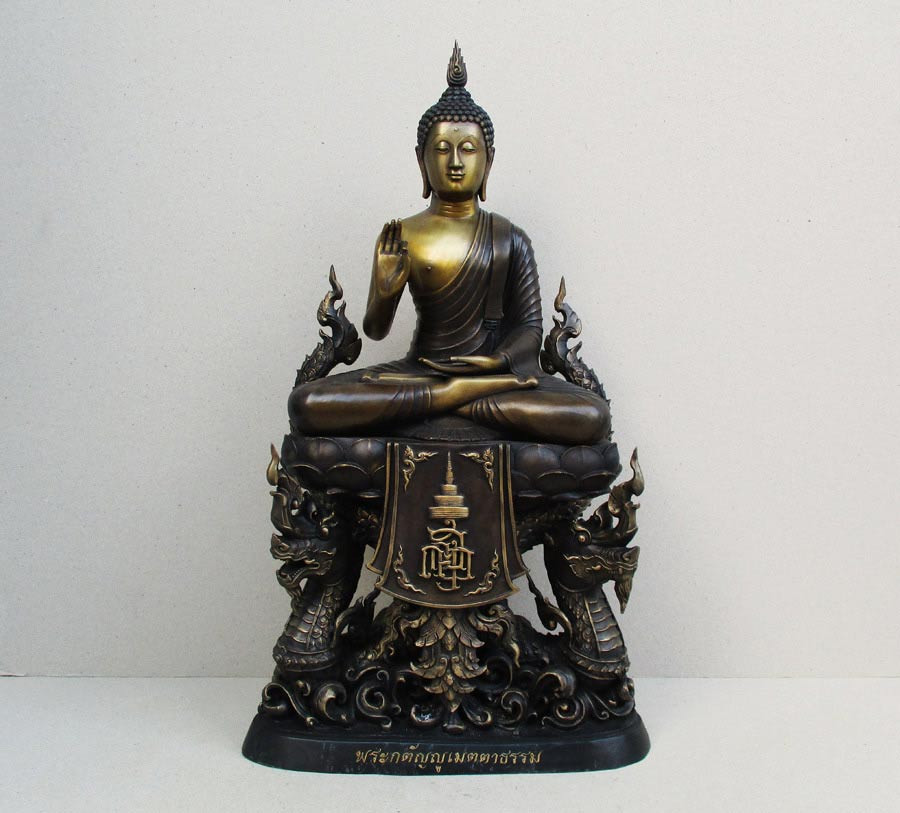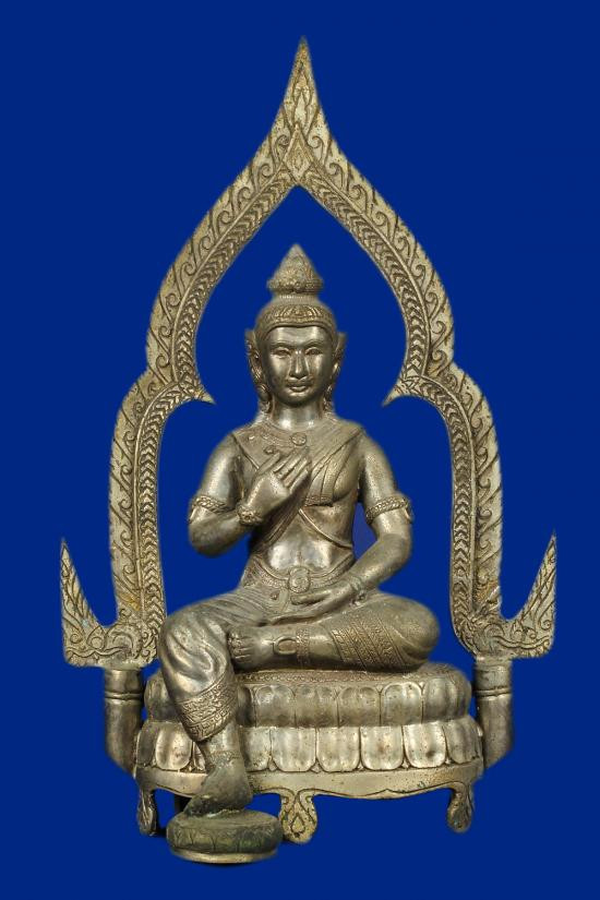 พระพุทธรูปฐานตราสัญลักษณ์ ภปร. ประจำมหาวิทยาลัยนเรศวร จ.พิษณุโลก ในวโรกาสพระบาทสมเด็จพระเจ้าอยู่หัว ภูมิพลอดุลยเดชฯ ครองราชครบ 50 ปี พ.ศ.2539 เนื้อโลหะรมมันปูผิวสวย หน้าตัก 9 นิ้ว ตอกโค๊ต หมายเลข !! |