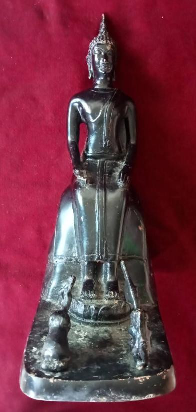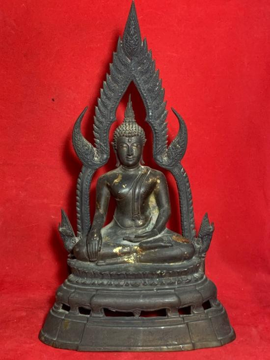 พระสัมพุทธภูธรินทร์ พระบูชารุ่นแรกของกรมตำรวจ ในหลวงรัชกาลที่ 9 เสด็จเททอง พ.ศ.2516 หน้าตัก 5 นิ้ว เนื้อโลหะรมมันปูผิวหิ้ง ดินไทยสีดำ-แดง ตอกโค๊ต ตอกเลข หายากครับ !! |