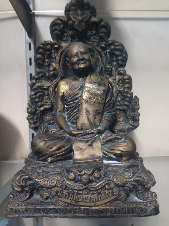 หลวงพ่อเงิน วัดบางคลาน จ.พิจิตร รุ่น ร่วมใจสร้างสะพาน วัดหิรัญญาราม พ.ศ.2528 หน้าตัก 9 นิ้ว ด้านข้างมีพัดยศคู่ เนื้อโลหะรมมันปู ผิวแห้งหิ้ง สภาพสวยสมบูรณ์ !! |