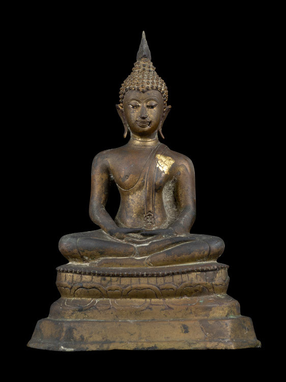 พระบูชาพุทธศิลป์ปางสุโขทัยนั่งมารวิชัย รุ่น 700 ปี ลายสือไทย หลวงพ่อเกษม เขมโก สุสานไตรลักษณ์ จ.ลำปาง พ.ศ.2526 หน้าตัก 9 นิ้ว ตอกโค๊ต เนื้อโลหะรมมันปูผิวแห้งหิ้ง พร้อมบัตรพระแท้การันตีพระ !! |