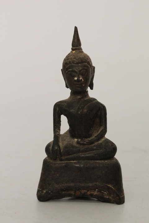 พระไม้แกะ ศิลปะลาว ปางมารวิชัย หน้าตักประมาณ 2.25 สูงประมาณ 6.25 นิ้ว |