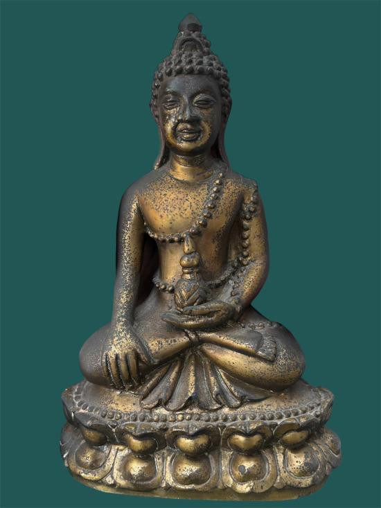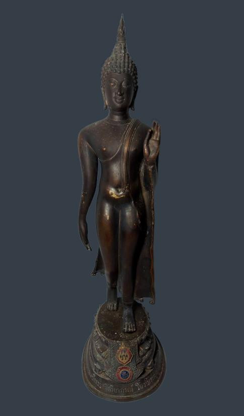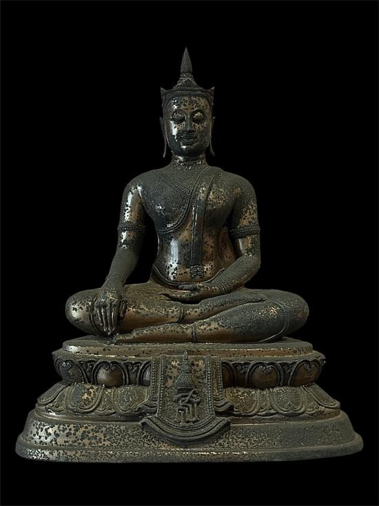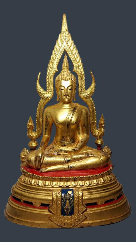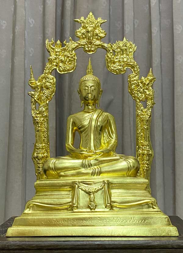 พระบูชา พระพุทธหิรัญราช พระเจ้าน้ำเงินน้ำทอง วัดท่าไม้ จังหวัดสมุทรสาคร ขนาดหน้าตัก 9 นิ้วสูง 15 นิ้ว ฐาน 11 นิ้ว เนื้อโลหะ |