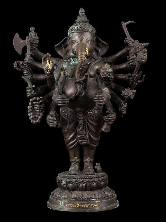 องค์พ่อจตุคาม เนื้อโลหะ สูง 9 นิ้ว หน้าตัก 3 นิ้ว ไม่ทราบที่จัดสร้าง |