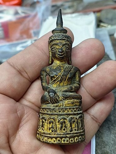 พระบูชา ศิลปะล้านช้าง สปปลาว หน้าตัก 1 นิ้ว สูง 3 นิ้ว พร้อมบัตร อายุ 400-500 ปี ปิดทองเก่าๆ สวยๆ |