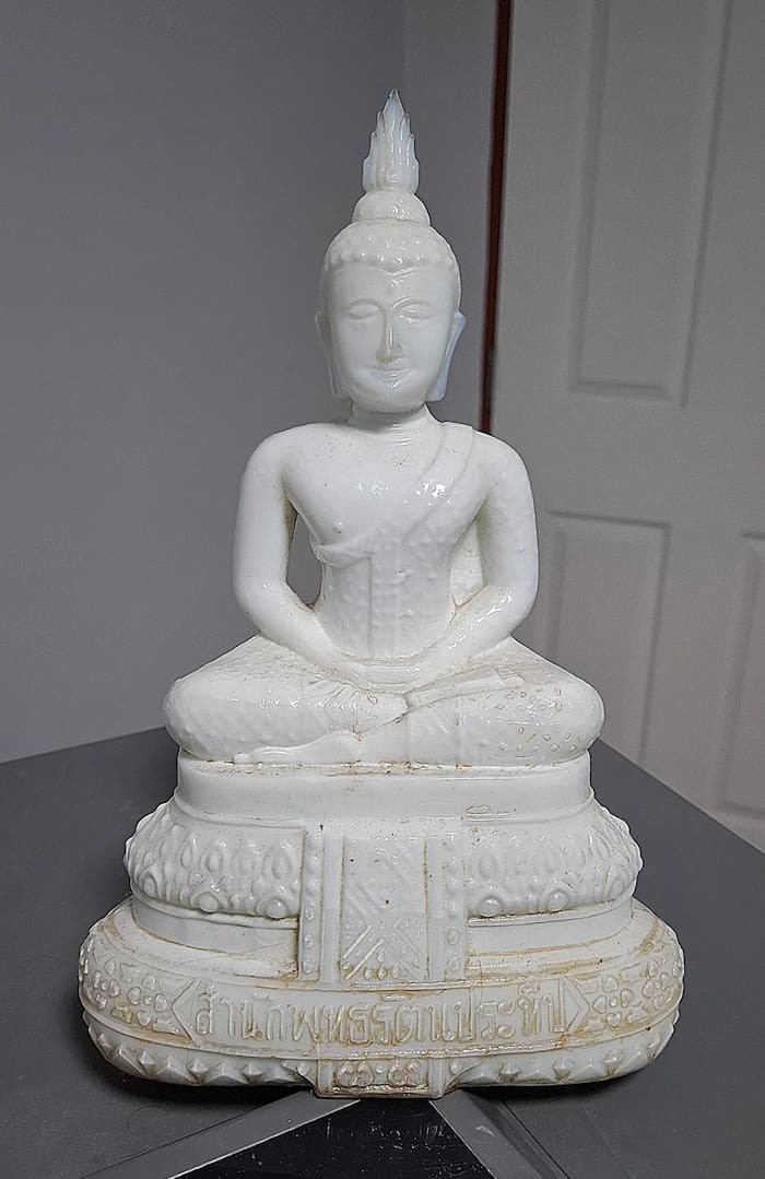 วัดใจ พระบูชาปางถวายเนตร (พระประจำวันอาทิตย์) วัดโสธรวรารามวรวิหาร จ.ฉะเชิงเทรา ใต้ฐานฝังเหรียญกลมเล็กพระอุโบสถวัดโสธรอุดผงปั๊มตราวัด ขนาดฐานกว้าง 3 นิ้วเศษ สูง 12 นิ้ว​ สภาพสวยผิวหิ้งเดิม ๆ |