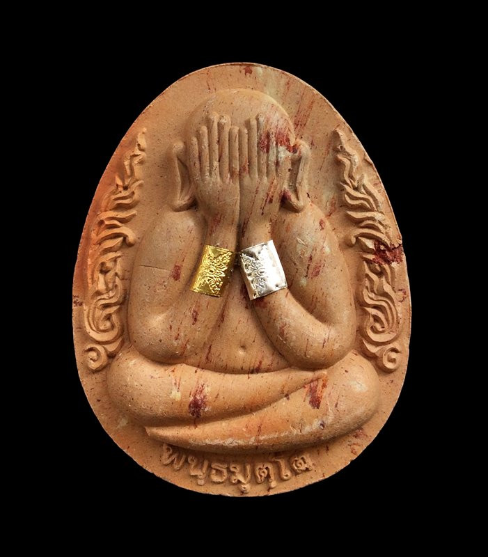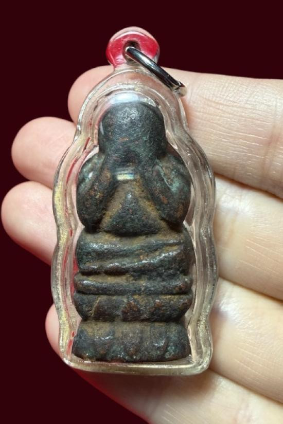 พระปิดตาเนื้อโลหะหลังเรียบไม่ทราบที่ครับ |
