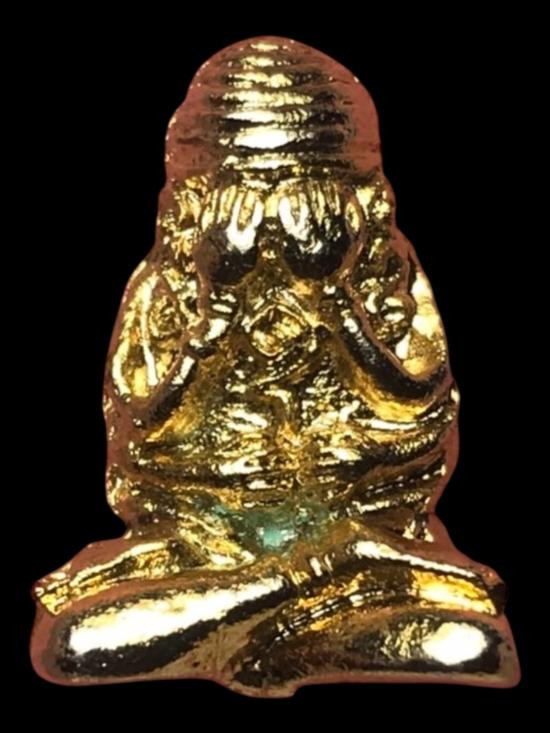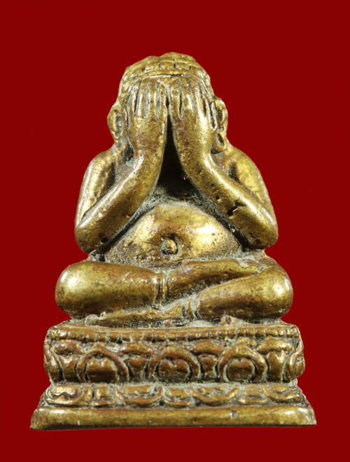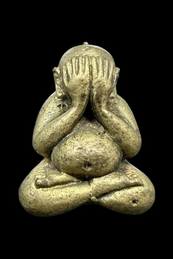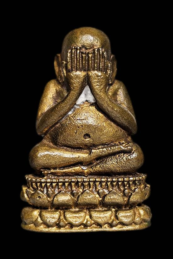 พระปิดตาทองลำอู่ หลวงพ่อเริ่ม วัดจุกกระเฌอ บัว 2 ชั้น เนื้อทองเหลือ ปี 2528 จังหวัดชลบุรี (ผงอุดเดิม) |