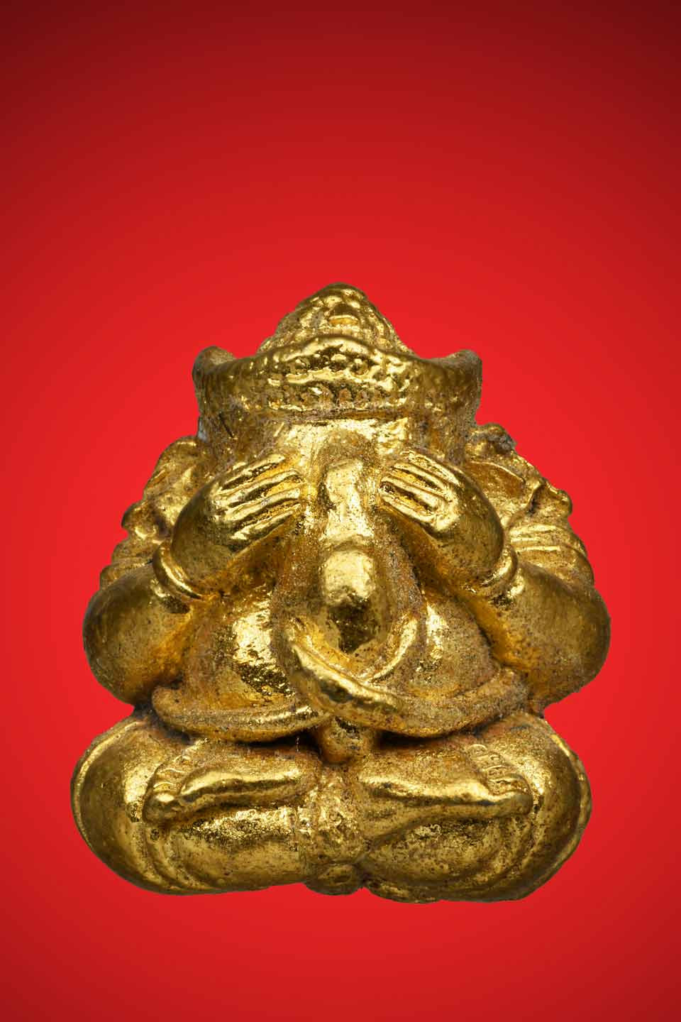 เคาะแดง พระพิฆเนศปางอ้อมจักรวาล ลป.หงษ์ รุ่นจงสำเร็จ เนื้อทองลำอู่ |