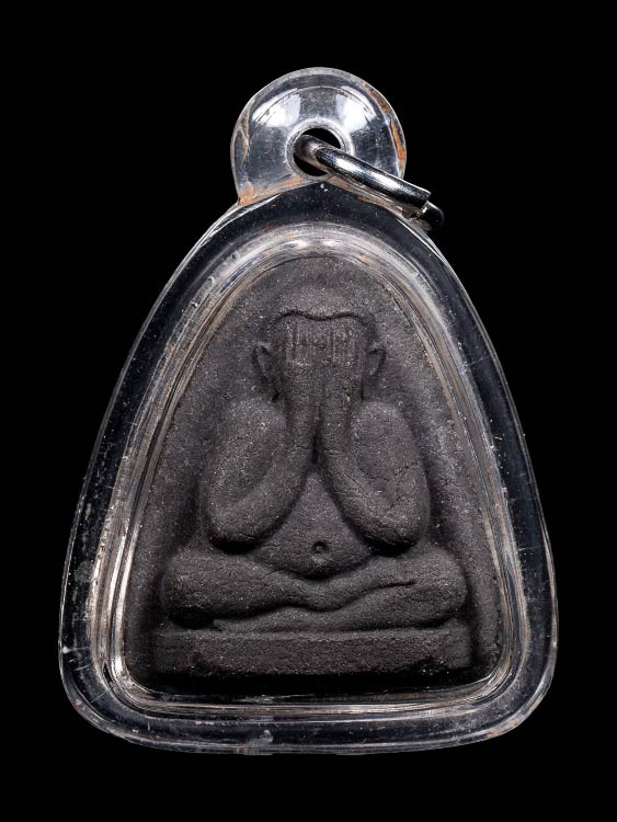 พระปิดตาพิมพ์ซุ้มตันสามเหลี่ยม หลังยันต์ หลวงปู่เฮี้ยง วัดป่าอรัญญิกาวาส ชลบุรี |