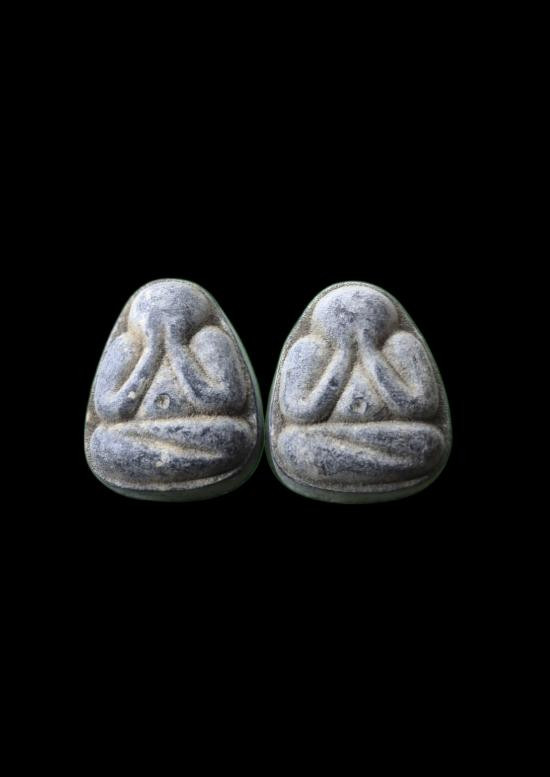 พระปิดตา หลวงปู่ใจ วัดเสด็จ หลังยันต์เฑาะว์ เนื้อเมฆพัตร ยุคต้น ปี2472 จ.สมุทรสงคราม + บัตรรับรอง G-PRA |