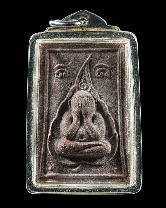วัดใจ40 พระปิดตาหลวงพ่อบ๊วย วัดเครือวัลย์ ชลบุรี พิมพ์ใหญ่ เนื้อผงคลุกรัก หลังยันต์+เจดีย์ |