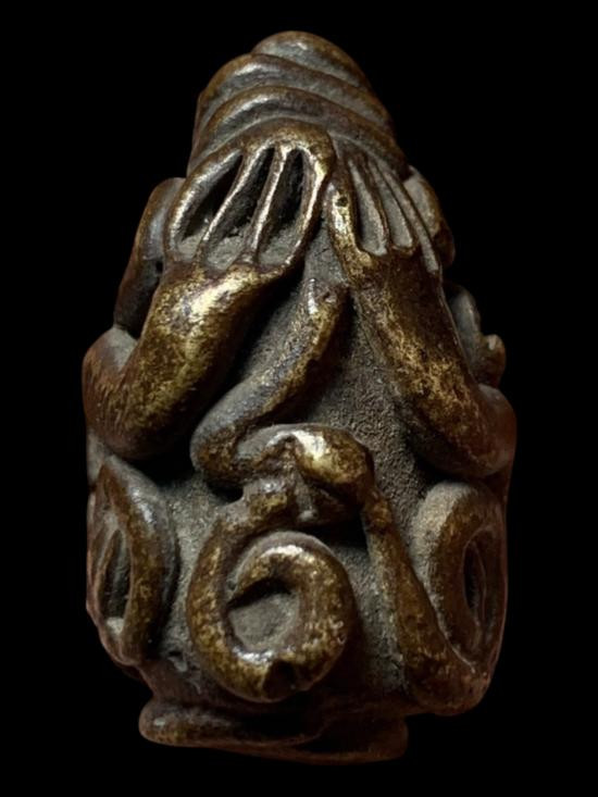 วัดใจ พระปิดตา มหาลาภ พิมพ์ใหญ่ หลวงพ่อฤาษีลิงดำ วัดท่าซุง จ.อุทัยธานี รุ่นแรก ปี 2518 (ไม่มีกริ่ง) |
