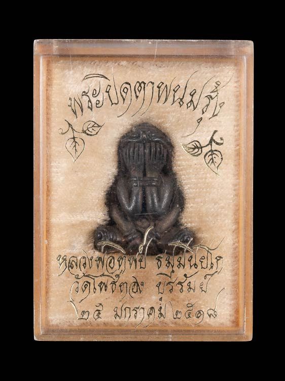 พระปิดตาพุทธเมตตา ทรงไก่ปีระกา เนื้อใบลาน หลวงปู่วิเวียร วัดดวงแข ปี ๒๕๓๖ พร้อมกล่อง |