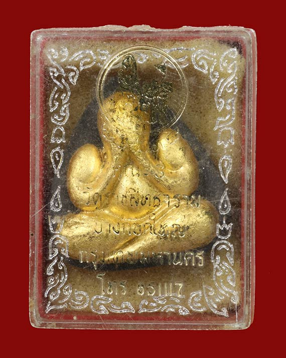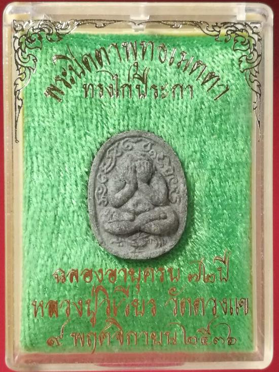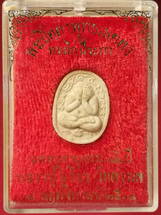 พระปิดตาพุทธเมตตา ทรงไก่ปีระกา เนื้อผงพุทธคุณ หลวงปู่วิเวียร วัดดวงแข ปี ๒๕๓๖ พร้อมกล่อง |