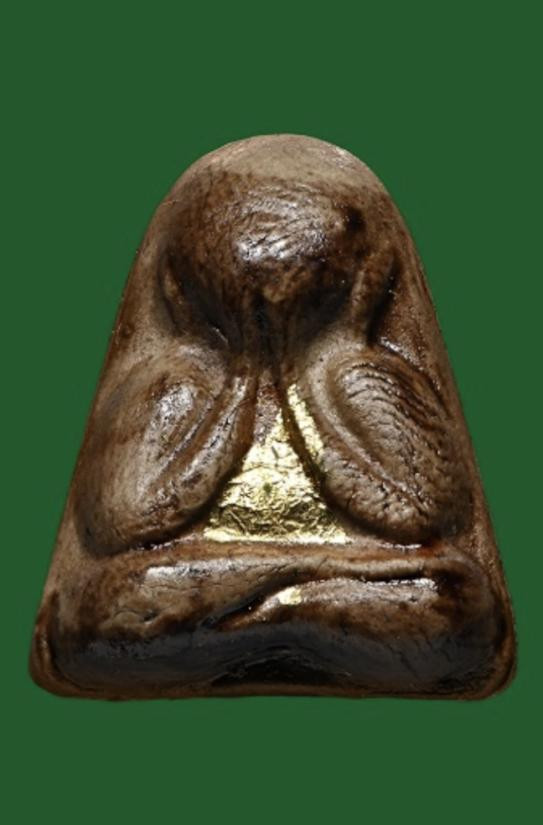 วัดใจ..พระปิดตาหลังแบบปิดทองเก่า หลวงปู่เฮี้ยง วัดป่า ด้านหลังด้านล่างบิ่นชำรุด |