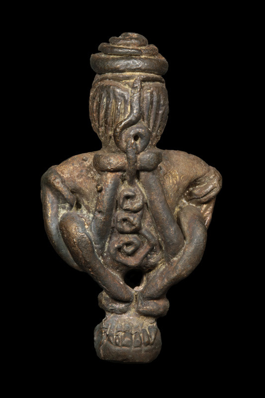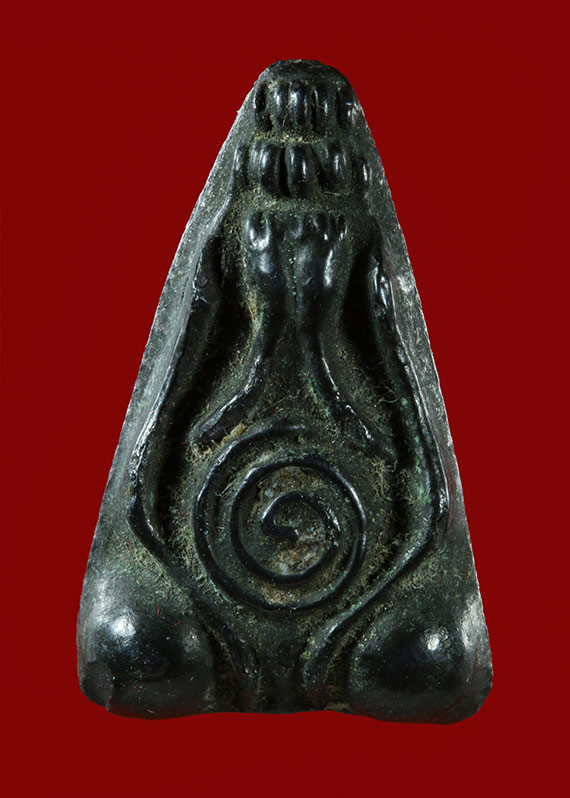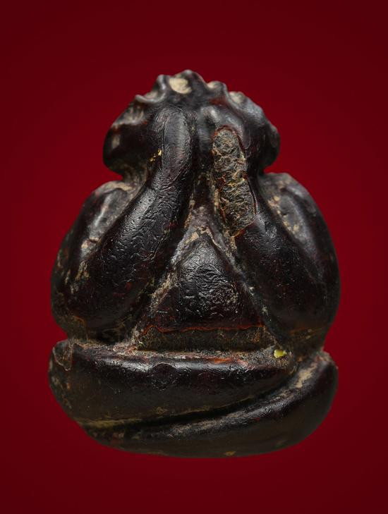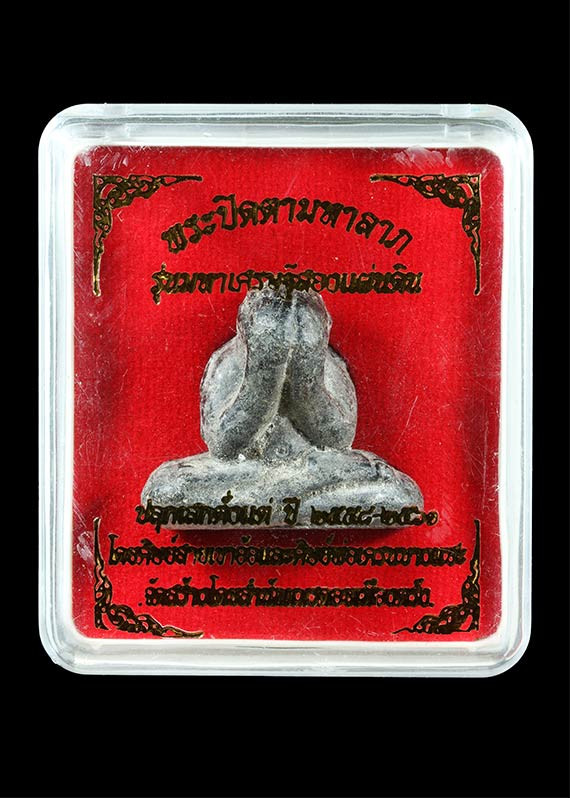 พระปิดตาหลวงพ่อน้อย วัดศรีษะทอง พิมพ์สองหน้าหลังอุ เนื้อชินตะกั่ว ปี 2478 จังหวัดนครปฐม พร้อมบัตรรับรอง |