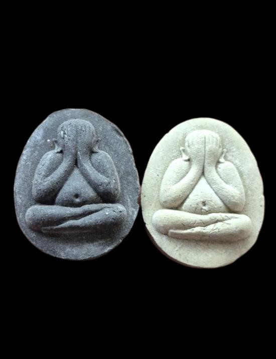 พระปิดตา ท่านเจ้าคุณศรี วัดอ่างศิลา เนื้อผงคลุกรัก พิมพ์หลังแบบ ปี 2500 สภาพสวย มาพร้อมบัตรรับรองจากทางเว็บจี |
