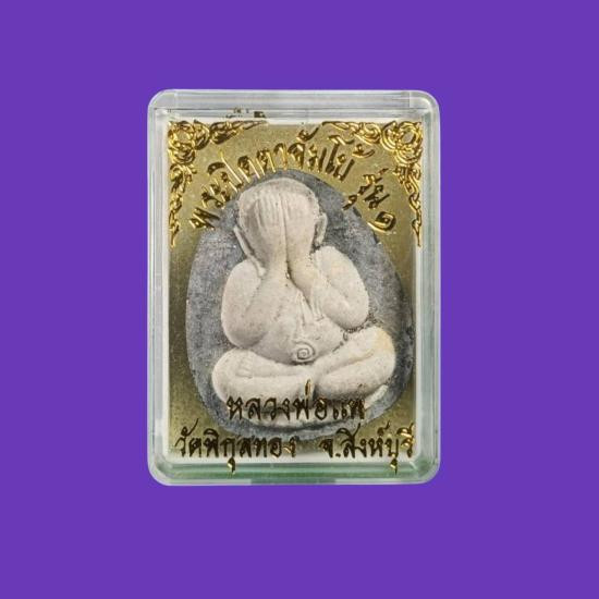 พระปิดตา หลวงปู่แย้ม วัดตะเคียน เนื้อเงิน ตอกโค๊ต กล่องเดิม |