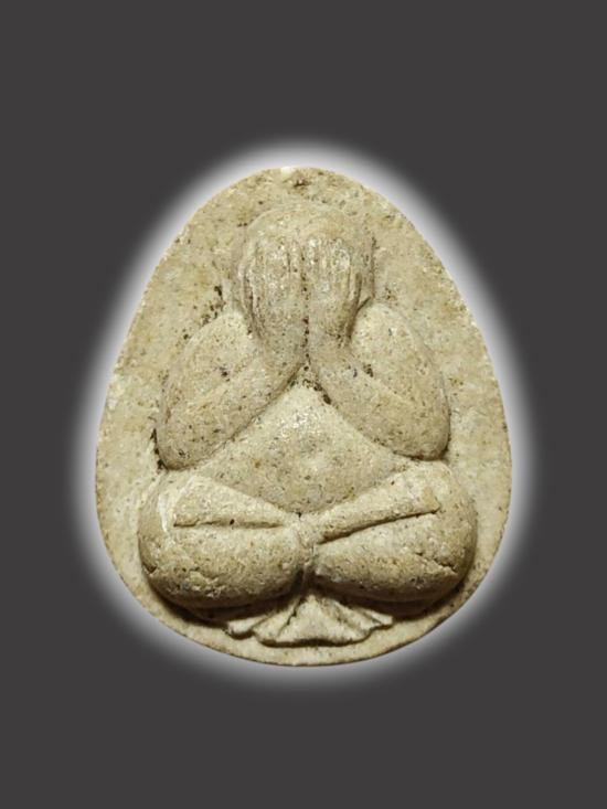 วัดใจ 40...ปิดตาหลวงปู่เฮี้ยง วัดป่า พิมพ์ปีกกว้างหลังแบบ เนื้อผง ปี08 พร้อมบัตรรับรองพระแท้จากทางเว็บ |