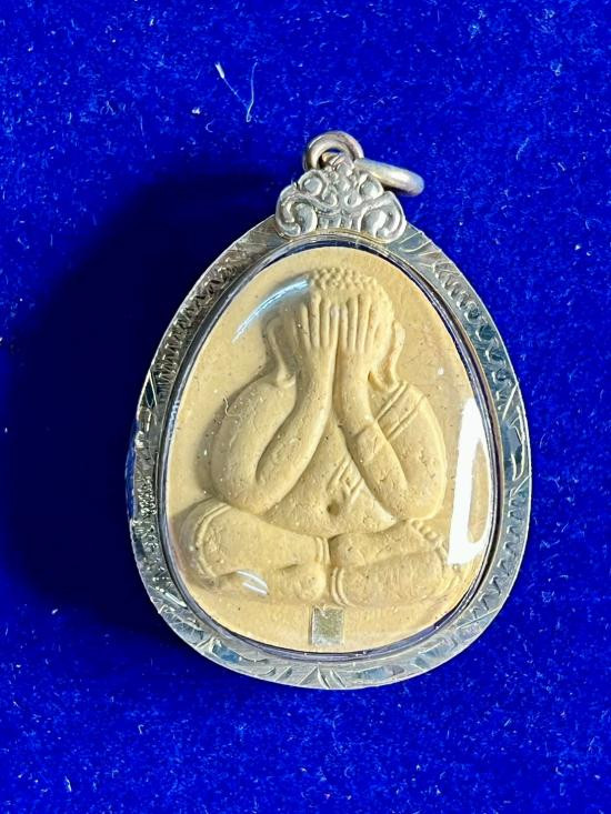 พระปิดตา รุ่น"เจ้าสัวพันล้าน" หลวงปู่มหาศิลา สิริจันโท ออกวัดโพธิศรีสะอาด เนื้อผงใบลาน คลุกจีวรหลวงปู่ ติดหน้ากากเนื้อเงินแท้ (รายการหลักที่ 4) (องค์นี้มีรอยบุบนิดเดียวที่มือซ้าย นอกนั้นพระสวยมากๆๆ |