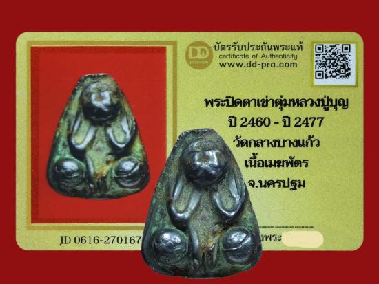 พระปิดตาเนื้อเมฆพัตร หลวงปู่บุญ วัดกลางบางแก้ว 2460-2470 พร้อมบัตรสมาคมเคาะเดียวแดง |