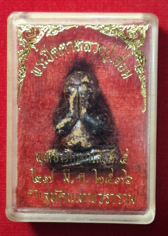 พระปิดตาหลวงปู่เฮี้ยง พิมพ์ซุ้มเถาวัลย์สองหน้า เนื้อผงคลุกรัก ปี2510 วัดป่า จ.ชลบุรี พร้อมบัตรรับรองครับ |