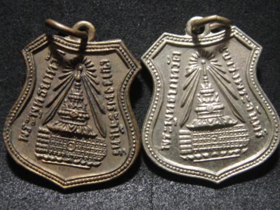 วัดใจเคาะเดียว.....100.........เหรียญพระพุทธบาทเขาวงพระจันทร์ปี 2504เนื้อทองแดงกะไหล่ทอง + เนื้ออัลปาก้า ปี 14 จังหวัดลพบุรี รวม 2 เหรียญ |