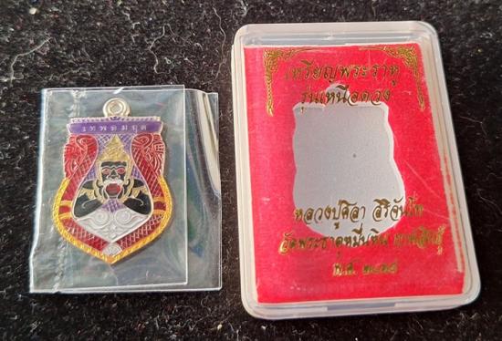 เหรียญพระราหูอมจันทร์ รุ่นเหนือดวง เนื้ออัลปาก้าลงยา ตอกเลข+ตอกโค๊ต พร้อมกล่อง |