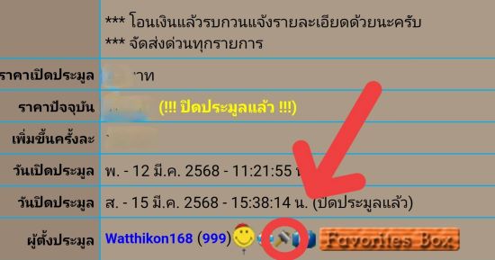 จ. - 06 ต.ค. 2568 - 19:51:30 น. (ปิดประมูลแล้ว) |