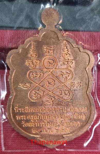 เหรียญที่ระลึกฉลองอายุครบ 7 รอบ หลวงปู่สิน ภททจาโร วัดละหารใหญ่ อำเภอบ้านค่าย จังหวัดระยอง หมายเลข 14023 |