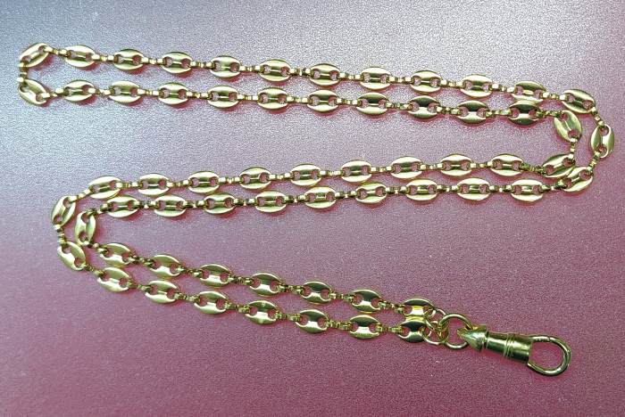 สร้อยสแตนเลสงานเลเซอร์ทอง ลายเมล็ดกาแฟ ยาว 26 นื้ว พร้อมสปริงก้ามปูสแตนเลสงานเลเซอร์ทองหมุนได้