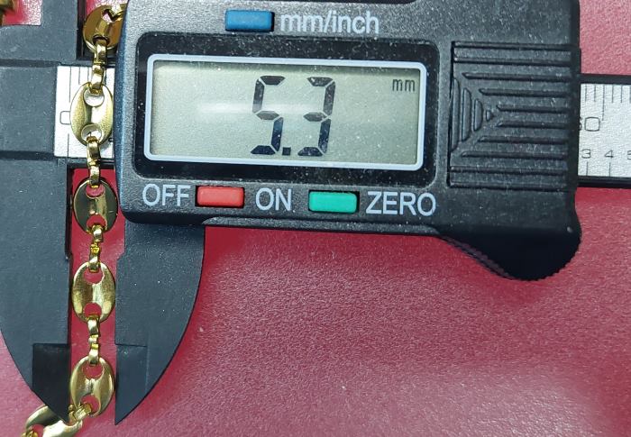 สร้อยสแตนเลสงานเลเซอร์ทอง ลายเมล็ดกาแฟ ยาว 26 นื้ว พร้อมสปริงก้ามปูสแตนเลสงานเลเซอร์ทองหมุนได้ เมล็ดกาแฟกว้าง 5.3 มม. หนา 1.5 มม.