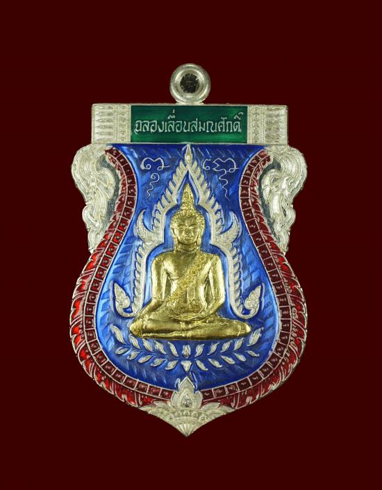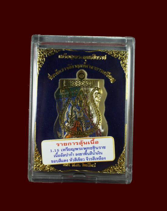 ( แชมป์ที่ 1 งานประกวดระยอง ) 1 ใน 9 เหรียญ ***เหรียญพระพุทธ ชินราช ที่ระลึกวางศิลาฤกษ์ เนื้อเงินหน้ากากทองคำ ลงยาพื้นน้ำเงิน ขอบลงยาแดงเขียว หมายเลข 2 สร้าง 9 เหรียญ หลวงพ่อทองสุข วัดหนองฆ้อ ระยอง ป |