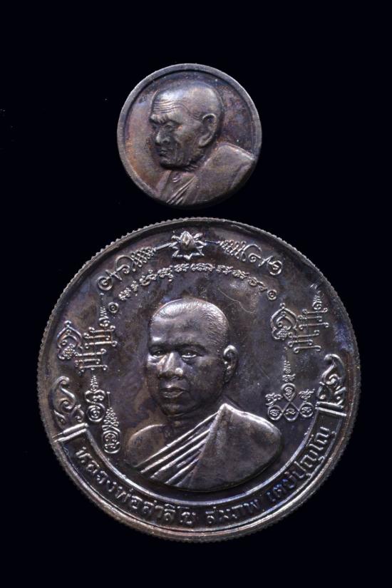 วัดใจ 490. เหรียญกลมสีหบรรลือ หลวงพ่อสมภพ พิมพ์กลาง ขอบสตางค์ วัดสาลีโข ปี 2534 + เหรียญกลมเล็ก สภาพสวย |