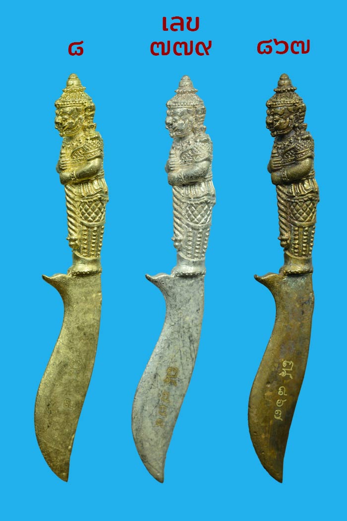 ๓ เล่ม เนื้อชนวน เนื้อชนวนสำริดเงิน เนื้อชนวนผิวรุ้ง มีดท้าวเวสสุสวรรณ หลวงปู่ณรงค์ สาโม วัดมงคลนิมตบ้านโนนเมือง อ.พยัคฆ์ภูมิพิสัย จ.มหาสารคาม ปี ๒๕๖๑ |