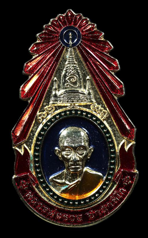 เข็มกลัดหลวงพ่อรวย รุ่นเปิดโลก สตมวาร ปี60 เนื้อกะไหล่ทองลงยาสีแดง no.928 |
