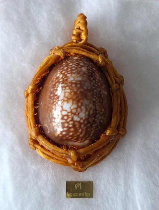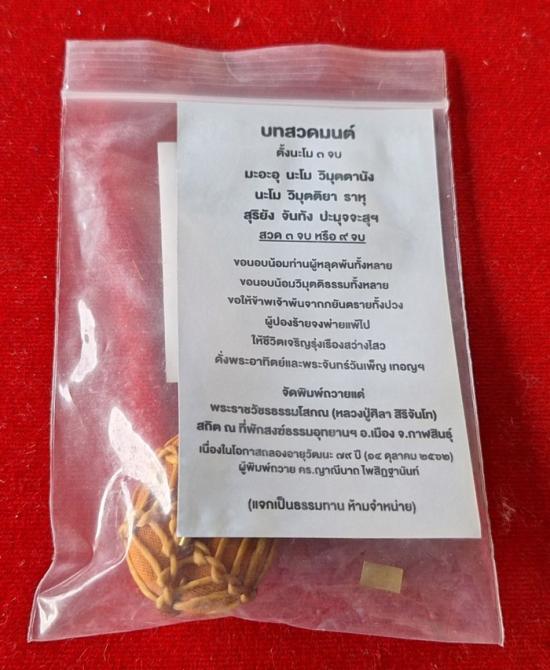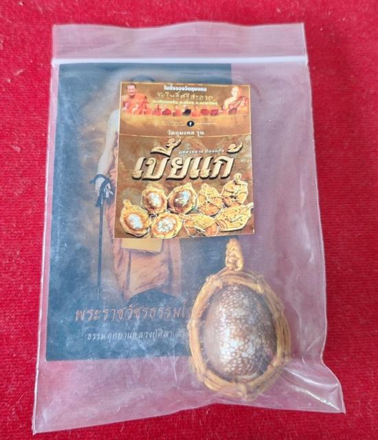 เบี้ยแก้ หุ้มจีวร ถักเชือก หลวงปู่ศิลา วัดโพธิ์ศรีสะอาด มีแผ่นเลขกำกับ ฝังตะกรุดทองเหลือง พร้อมใบคาถา ปี2567 |