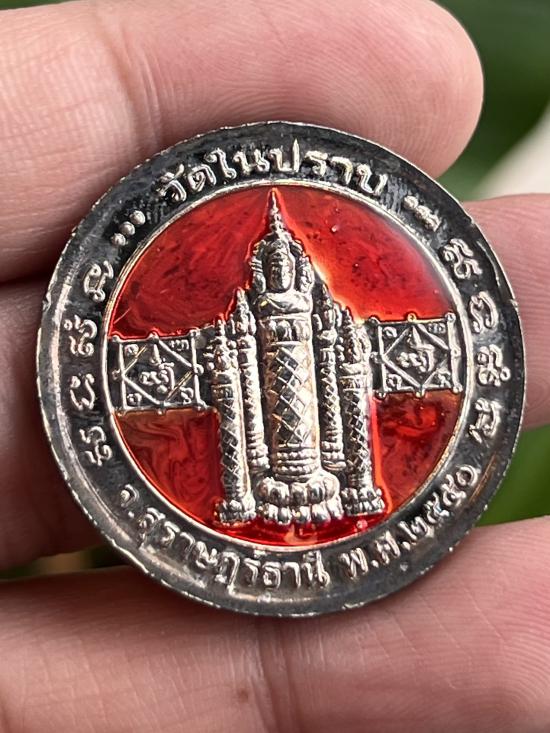 เหรียญกลมกะไหล่เงินลงยาสีแดง หลวงพ่อชื่น วัดในปราบ รุ่น ฉลองครบรอบ85 ปี2550