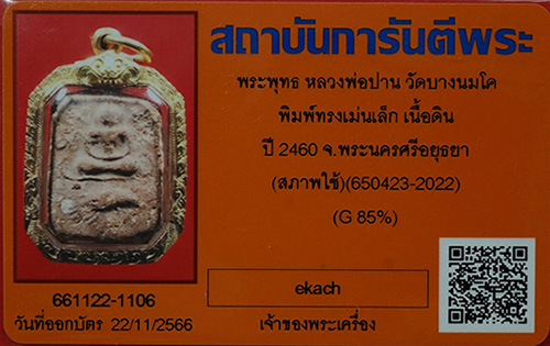 หลวงพ่อปาน วัดบางนมโค พิมพ์ทรงเม่นเล็ก เนื้อดิน ปี 2460 เลี่ยมทองหนาๆ พร้อมบัตรรับรองครับ