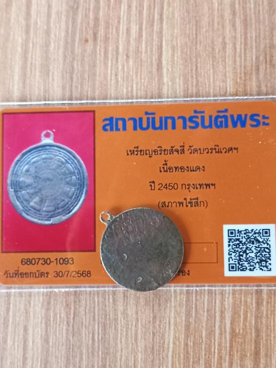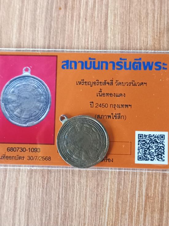 เคาะเดียวแดง++เหรียญอริยสัจสี่ วัดบวรนิเวศฯ เนื้อทองแดง ปี 2450 กรุงเทพฯ มาพร้อมบัตรรับรอง สภาพใช้สึก |