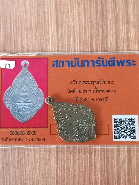 เคาะเดียวแดง++เหรียญพระพุทธวิริยากร วัดสัตนารถฯ เนื้อทองแดง ปี 2481 จ.ราชบุรี สวยเดิมพร้อมบัตรพระแท้ครับ