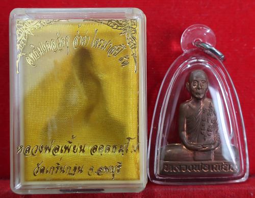 เคาะเดียว รูปเหมือนปั๊มเข่ากว้าง หลวงพ่อเพี้ยน เนื้อทองแดง สวย กล่องเดิม พร้อมเลี่ยม |