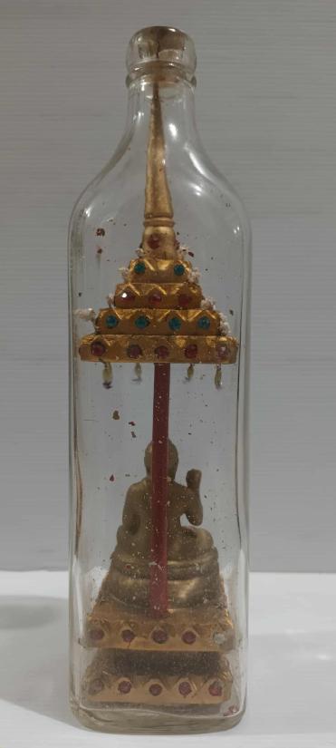 (ครบชุด สุดยอด หายากมากๆ) พระบูชา : หลวงพ่อพริ้ง วัดโบสถ์โก่งธนู ในขวดแก้ว