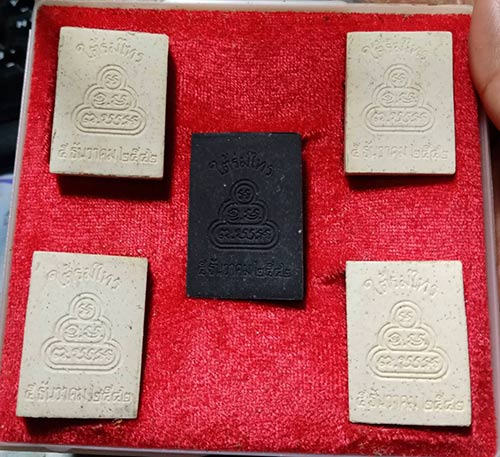 ***138..........***พระเนื้อผงพุทธคุณ ใต้ร่มไทร ชุด 5 องค์ หลวงพ่อเปิ่น วัดบางพระ ปลุกเสก ๕ ธันวาคม ๒๕๔๒ สวยกล่องเดิม |